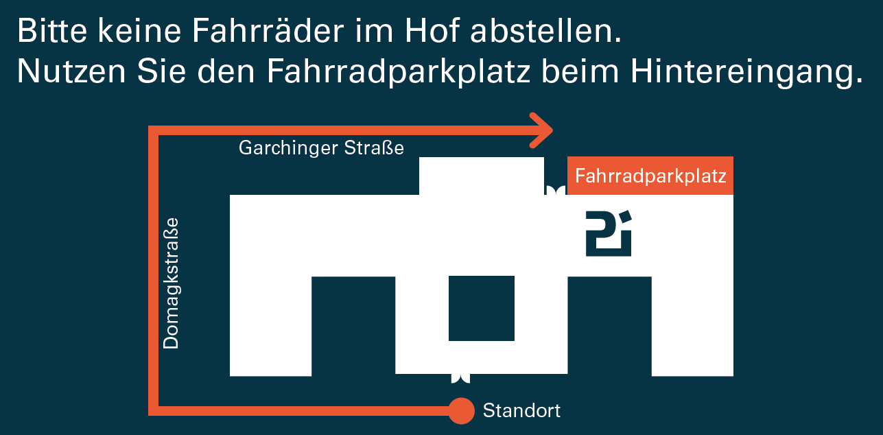 Über die Garchinger Straße auf der Rückseite des Schulcampus erreichen Sie den Fahrradparkplatz. Das Abstellen von Fahrrädern innerhalb des Schulgeländes ist nicht erlaubt.